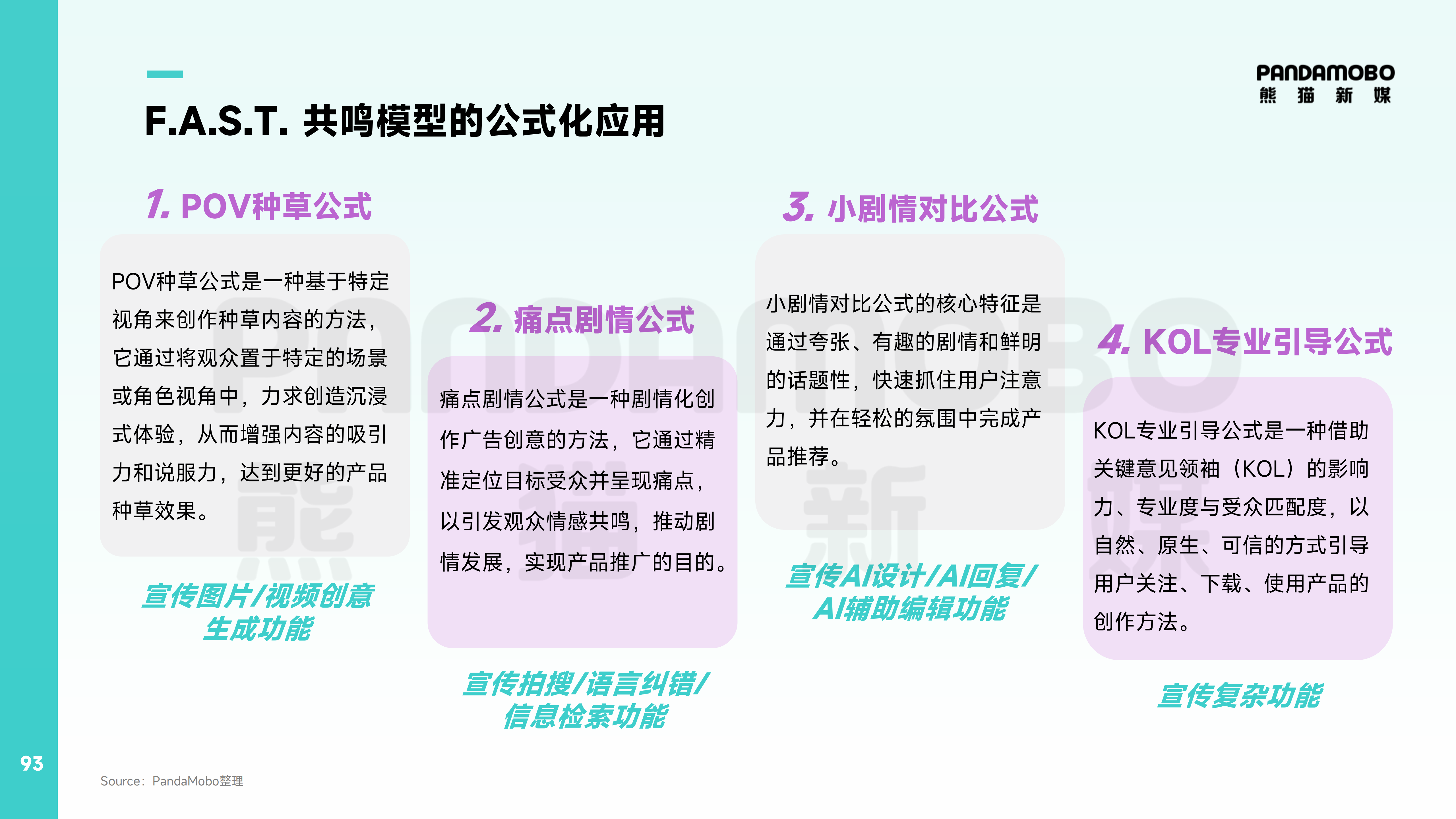 在这种背景下,行业已从“功能竞赛”转向“精准穿透”,谁能用更少预算击穿更深用户心智,谁就能存活。针对多模态AI产品的营销痛点,PandaMobo提出F.A.S.T.共鸣模型,通过: