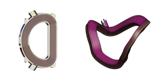 图2: 托卡马克二维磁体线圈(左),仿星器三维磁体线圈(右)