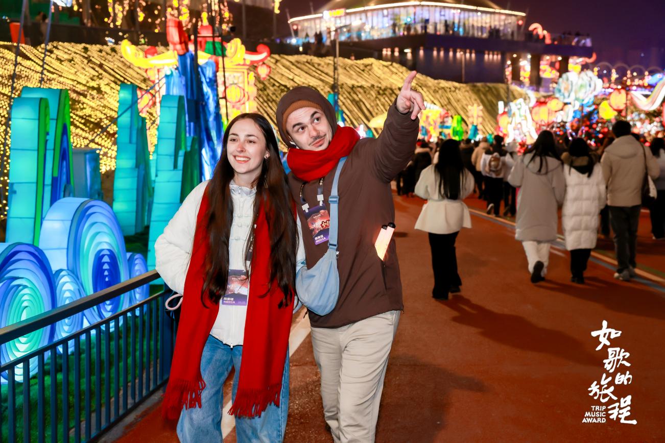 为将自贡灯会的文化魅力推向更广阔的世界舞台,让更多境外游客亲身感受中国传统节庆的独特韵味,本届灯会特别邀请了来自全球的40余位国际文旅博主与旅行达人组成体验团。他们深入中华彩灯大世界,不仅用镜头捕捉灯组的宏大构思与精巧细节,更与手工艺人交流彩灯背后的文化故事。在“我自发光·自贡之夜”的演出现场,海外达人们更是沉浸在灯光与音乐共创的震撼氛围中,频繁记录着这场视听盛宴。