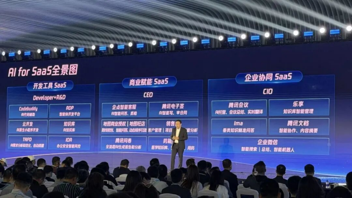 腾讯云副总裁、产业生态合作业务负责人杨晨在大会演讲中,系统阐释了腾讯“AI for SaaS”的战略内核与生态图景,该战略的核心在于,以AI全面重塑SaaS服务模式,推动产品从工具向智能生产力演进,并通过开放协同的伙伴体系,为企业各关键角色提供场景化、一体化的数字解决方案。如为CEO提供以增长为导向的商业赋能套件(如智能营销、电子签、CRM),为CIO提供提升内部效率的协同产品矩阵(如会议、文档、办公平台),并为研发团队提供先进的AI开发工具,从而构建覆盖企业运营全链路的智能产品家族。