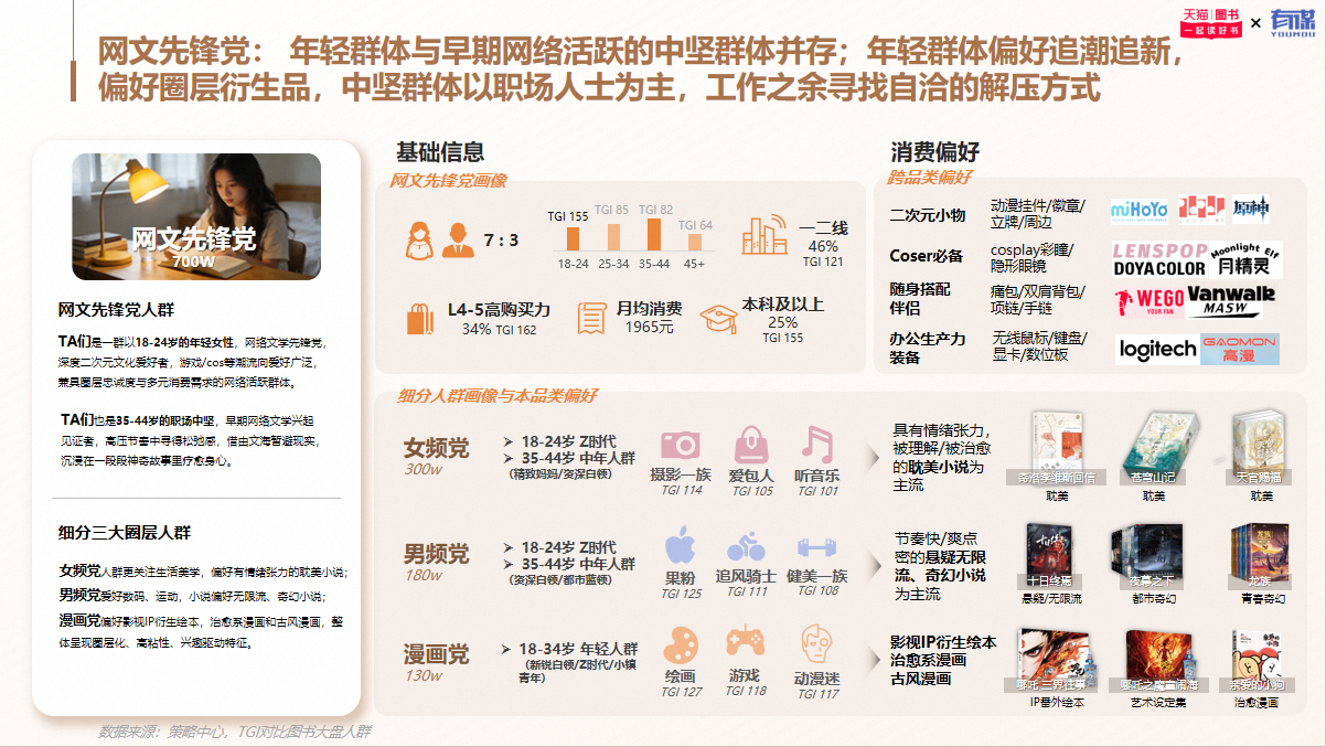 2025年,天猫平台人均购书量同比增长超20%,图书消费市场持续升温。作为国内图书消费的主要阵地,天猫观察到行业正呈现出鲜明的新趋势:漫画、小说等非刚需类图书销量快速增长,18-24岁女性用户正在成为图书消费的新生力量。