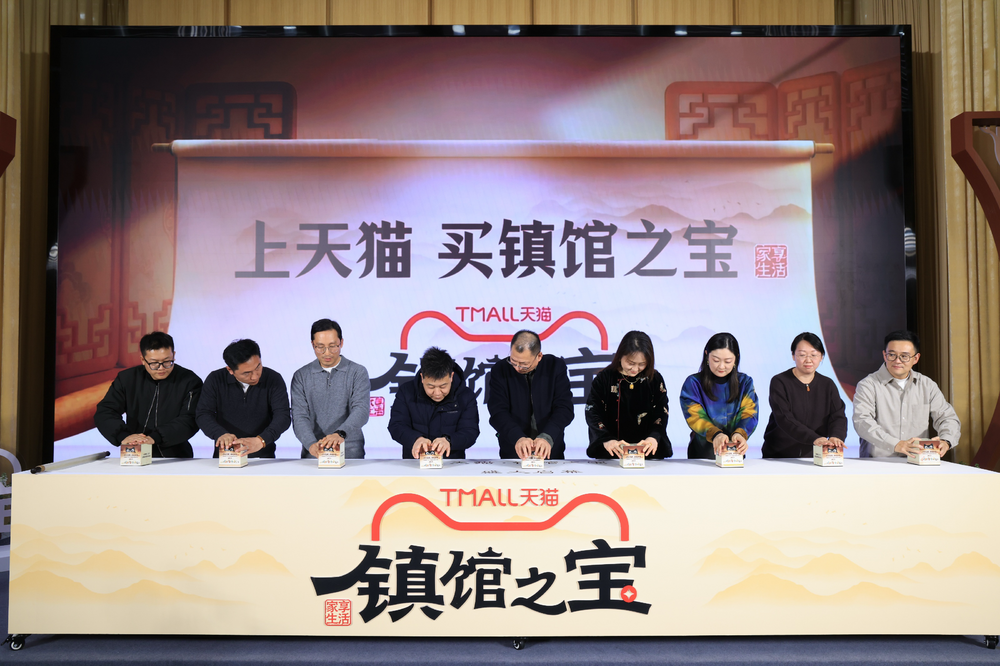 发布会上,中国国家博物馆、故宫博物院、国家图书馆、甘肃省博物馆、河南博物院、苏州博物馆、陕西历史博物馆、敦煌研究院、三星堆博物馆、青岛啤酒博物馆10家博物馆,万仟堂、太湖雪、铜师傅、罗莱等品牌,共同启动天猫“镇馆之宝”计划。