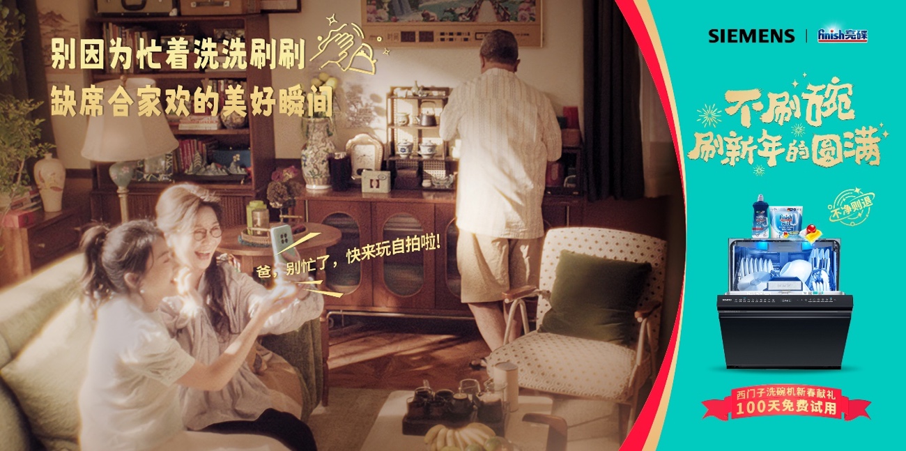 春节的热闹从一桌饭开始,也常在饭后被“收尾工作”拉回现实:碗盘一摞、锅具一堆、油污黏手,刚刚围坐聊天的时间,很快被清洁与收纳切走。西门子洗碗机携手亮碟在新年的节点推出主题营销活动,以“不刷碗,刷新年的圆满”为主张,将节日厨房的高频痛点放到更真实的家庭语境里讨论:如何让饭后清洁更省心、让家务分担更可持续、让团圆时刻尽可能少被打断,将“轻松过年”的期待落到可执行的清洁方案之上,让技术真正服务于日常体验。