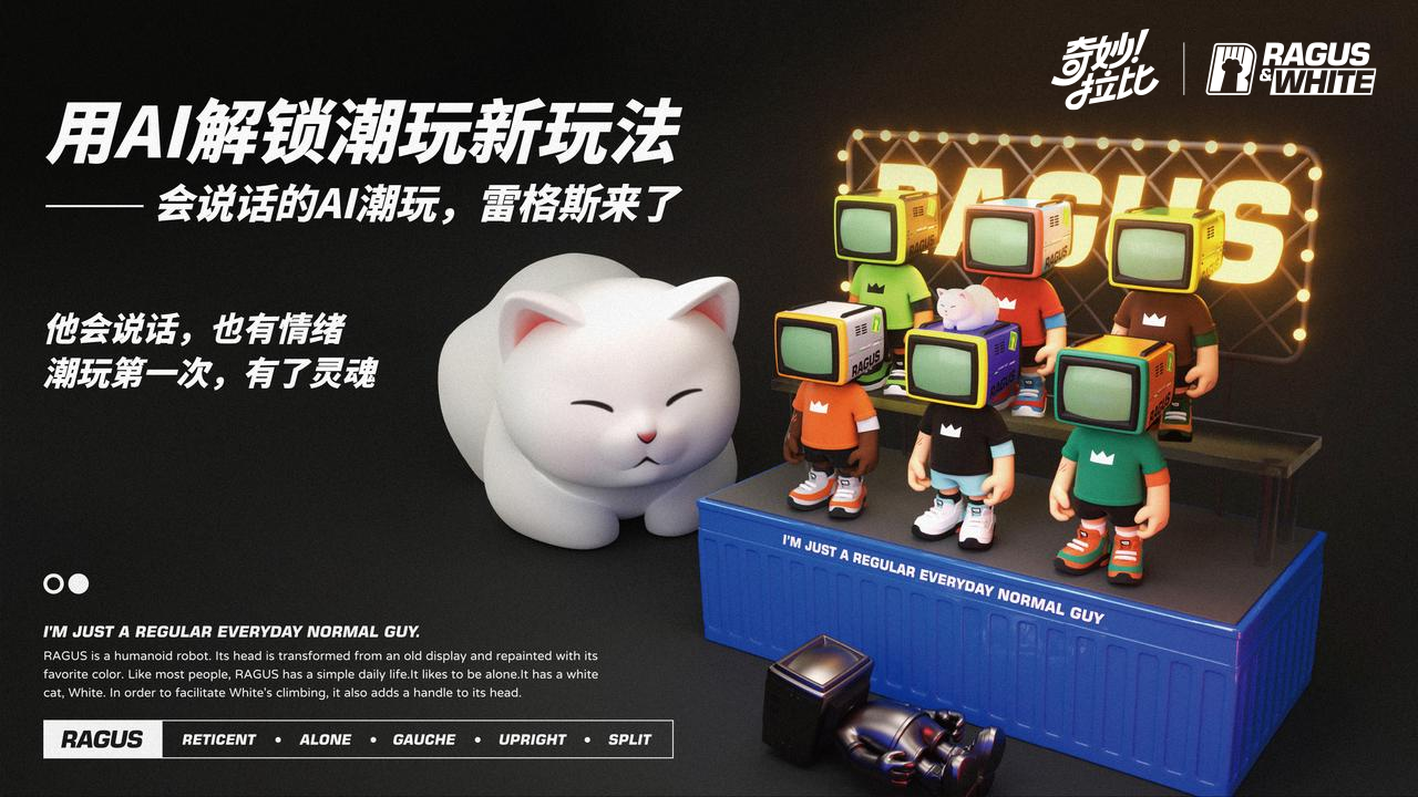 品牌的首个核心IP雷格斯(RAGUS & WHITE)于2025年6月正式推出,是一款桌面级AI潮玩产品。产品坚持“潮玩优先,AI后置”的设计逻辑,在具备潮流审美与陈列价值的基础上,通过AI赋予其稳定人格、长期记忆与交互能力,让角色能够伴随用户时间推移而不断“生长”,从而形成独特的情感连接。