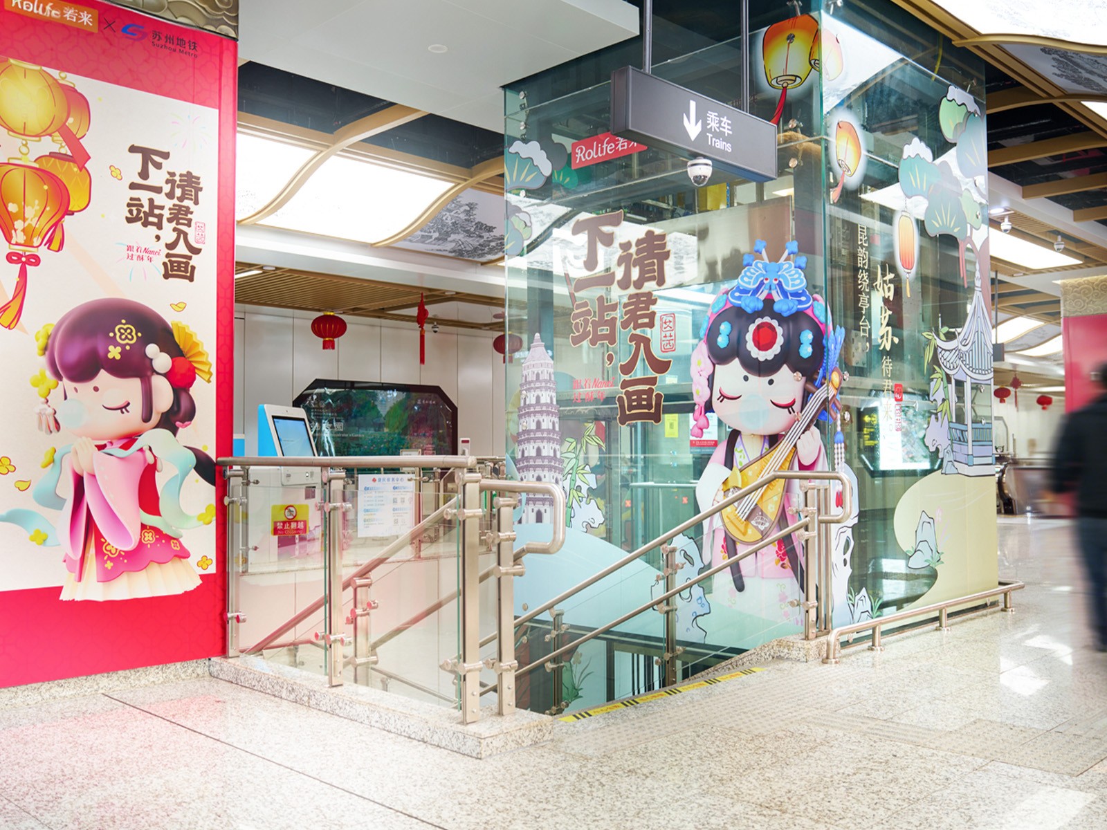近日,Rolife若来携旗下原创IP形象——苏州囡囡 Nanci,与苏州地铁共同打造新春主题活动“下一站,请君入画”,相关主题内容已在地铁空间陆续呈现。通过主题车厢与特色站点的布置,苏州园林意象与传统年俗元素被引入城市通勤场景,在日常出行空间中勾勒出具有苏式韵味的新春画面。