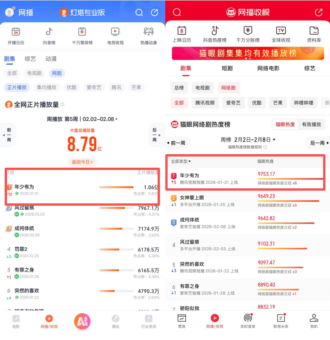 2026年的长视频市场,青睐什么样的作品?开年贺岁喜剧《年少有为》带来了一份答案。《年少有为》自1月31日上线以来,热度持续走高,并于近日包揽灯塔网剧正片播放量周冠军、猫眼网络剧热度榜周冠军,猫眼数据显示,其全网有效播放量已破2亿。《年少有为》的热播,不仅为新丽传媒拿下开门红,也向行业展现了精品长视频独有的内容魅力和风向引领作用。