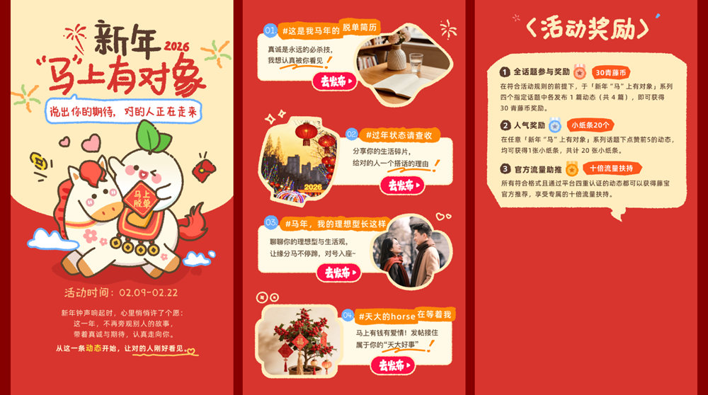 这个春节,与其独自守屏,不如主动连接。打开鸿蒙版青藤之恋,发一条动态,赴一场相遇,也许下一秒,缘分就来敲门。