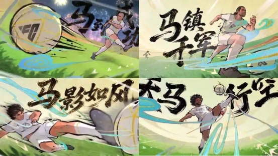 而罗纳尔多作为足坛历史级前锋,核心能力在于进攻端的高效率,因此“马到成功”一词与其称得上绝配;巴萨中场铁腰马克斯则是以攻防转换与节奏把控能力著称,“马镇千军”一词完美体现了其以核心枢纽稳住全局、压制对手攻势的技术特点;对于有着历史第一左后卫美誉的马队,《FC足球世界》使用了“马影如风”,以马扣名、影喻防守、如风状速度,三维度精准覆盖马尔蒂尼的攻防特质与传奇气质;马塞洛对应的马字成语则是“天马行空”,定格的招牌停球动作体现了其不受拘束的创造力和灵动多变的技术风格。