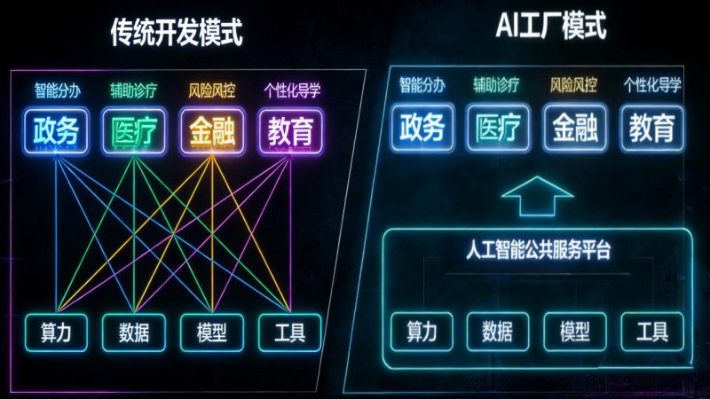 长期以来,人工智能应用开发面临三重门槛:算力获取难、数据合规成本高、算法开发周期长。传统模式以项目制、分散化为主,技术栈不统一,人才要求高,数据与算力资源重复投入,产出质量参差不齐,导致开发周期动辄数月、投入成本高达数百万元,规模化落地困难重重。