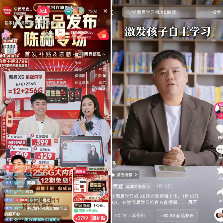 从种草、榜单到直播,学而思塑造了“智慧年货”新趋势,也提升了商家的影响力。数据显示,新品周期GMV突破1.2亿,人群拉新占比提升50%。