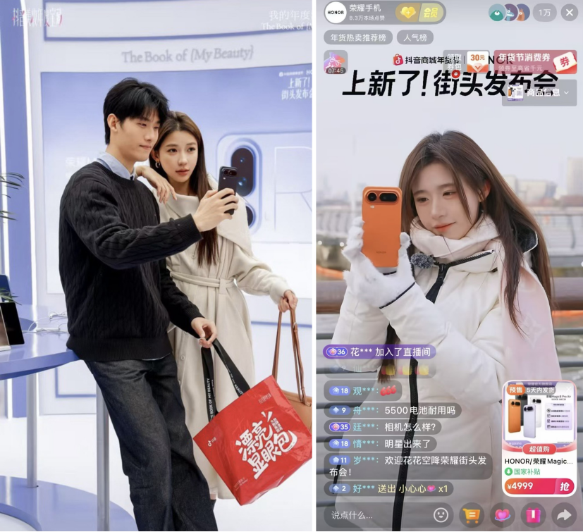 为了创造科技潮流感新年味,手机商家荣耀 Magic8 Pro Air 携手美妆跨界联动,精准锁定高审美、高消费力的时尚科技跨界人群,借助《时尚芭莎》高端美妆圈层的调性赋能新机美学认知,夯实商家“科技即美学” 的高端定位,