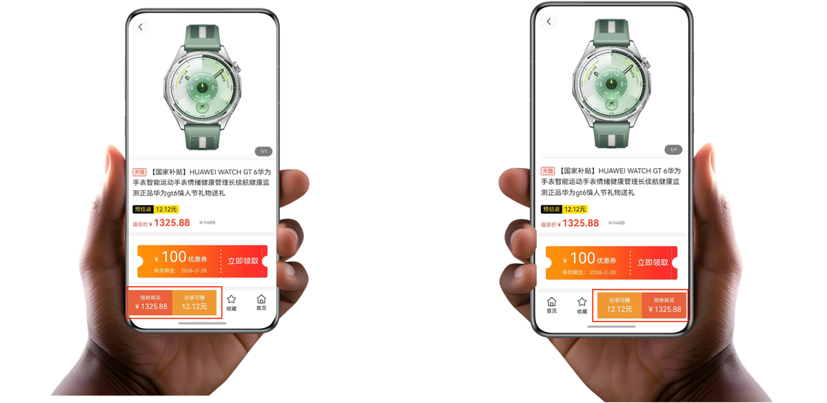 • 购物下单不费力:地铁上单手扶杆,刷到心仪好物想下单,但购买按键在另一边……鸿蒙版最会买适配智感握姿,购买、分享、收藏按钮自动换边,一键下单,毫不费力!