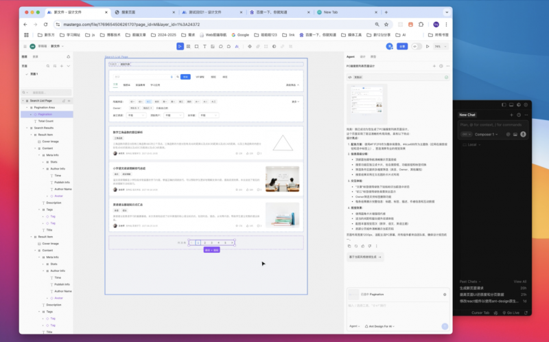 当然,MasterGo Agent 的价值远不止于“生成页面”,而是进一步被前端团队接入了研发工作流,实现了从设计到代码的自动化交付:产品经理使用 MasterGo Agent 生成页面后,前端工程师只需复制该容器的链接,通过 MCP 插件发送给 Cursor,基于新东方内部的前端代码规范,自动生成可直接部署的前端代码。