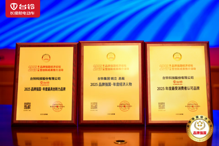 殊荣不止于此,在后续举办的2025品牌强国经济论坛暨(第八届)创新成果推介活动中,台铃再添两项重量级品牌大奖,将“2025品牌强国·年度最具创新力品牌”与“2025年度最受消费者认可品牌”收入囊中。姚立总裁再度斩获“2025品牌强国·年度经济人物”称号,以双重荣誉印证了个人与企业在行业发展中的标杆价值。这一系列荣誉的叠加,是对台铃绿色创新理念与品牌建设成果的高度肯定。