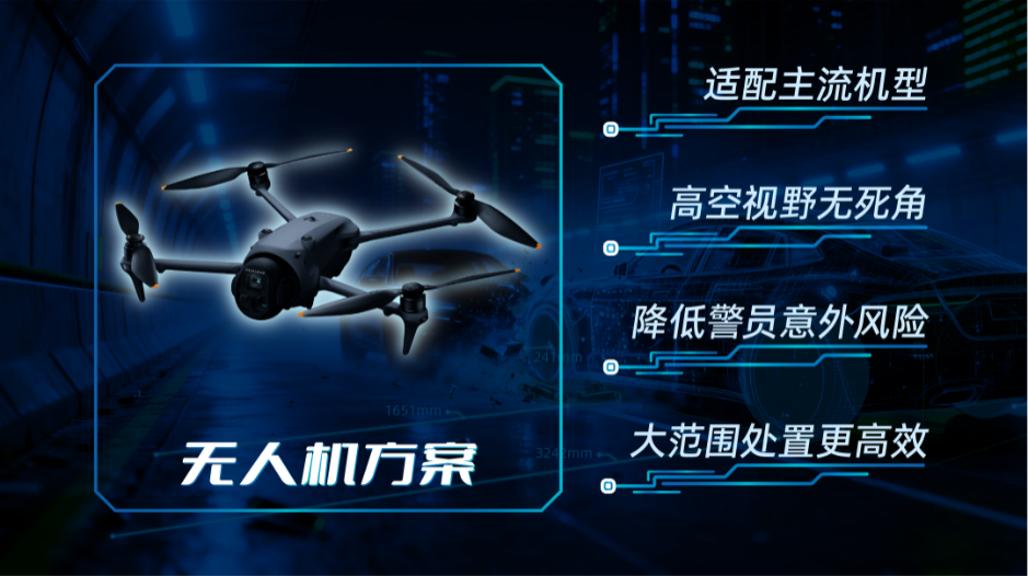 无人机大范围采集方案针对"覆盖范围广、路段延伸长、现场态势复杂"等传统采集难以应对的挑战而设计。无论是高速公路、多车道路段,还是长距离事故现场与拥堵延伸区域,无人机均可迅速建立现场整体态势的空间认知,为指挥决策提供全局视角。