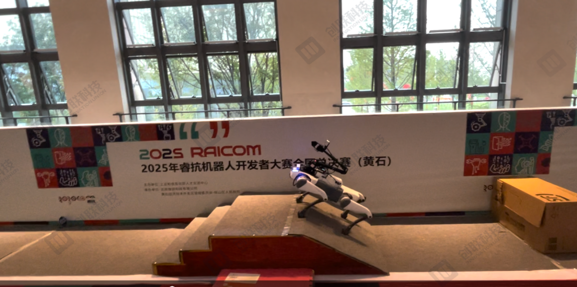 在全国睿抗机器人开发者大赛(RAICOM)四足机器人分项中,云深处科技与宏途创联联合提供技术支撑。双方设计集自主导航、多模态感知、精准作业于一体的高仿真赛道,模拟密集机柜穿行、矿山视觉干扰、多楼层联动等工业挑战,引导上千名学子直面产业一线问题,实现“以赛促产、以赛促研”。
