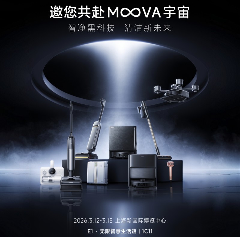 2026年3月12至15日,中国家电及消费电子博览会(AWE)即将于上海启幕,高端智能家电品牌MOVA旗下清洁业务线将重磅亮相,以“万象互联·智枢新程”为内核,携全品类清洁新品与多项首创技术登场,深度诠释AI主动时代下清洁家电的研发突破与系统创新,展现家庭空间秩序节点的技术重构能力。