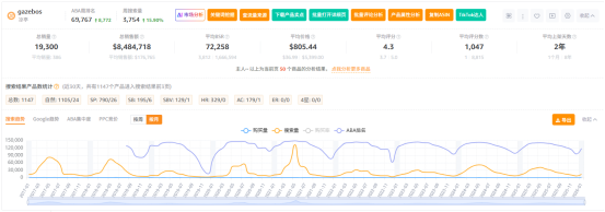 不止全球市场呈正向发展,电商平台的销售情况也在释放积极信号。就拿亚马逊来说,平台上的户外遮阳蓬表现出了强烈的季节性增长趋势。