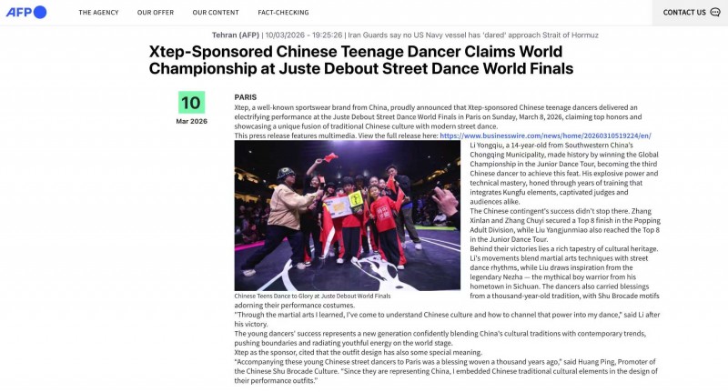不同于传统体育赛事的传播模式,特步少年结合青少年群体的传播习惯,联动多平台打造立体化传播矩阵,既通过短视频平台呈现舞者的精彩表现,吸引年轻用户的关注,也借助新闻平台解读赛事背后的品牌逻辑与文化价值,实现流量与口碑的双重提升。外媒的争相报道,更让这场赛事成为中国潮流文化出海的一个重要窗口,进一步扩大了特步少年的国际品牌影响力。