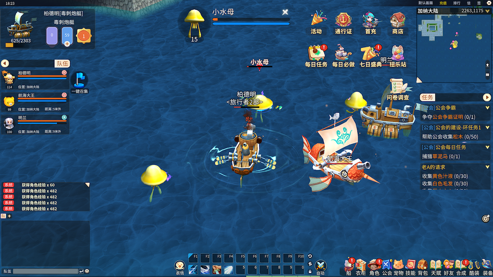 游戏中继承了原作所有经典玩法,包括:船只建造、地域BOSS、挖宝系统、组队社交等,并延续“夺岛、海战”等高人气玩法,以及经典设定,比如:前往不同传送点,需要购买飞机票进行传送等。