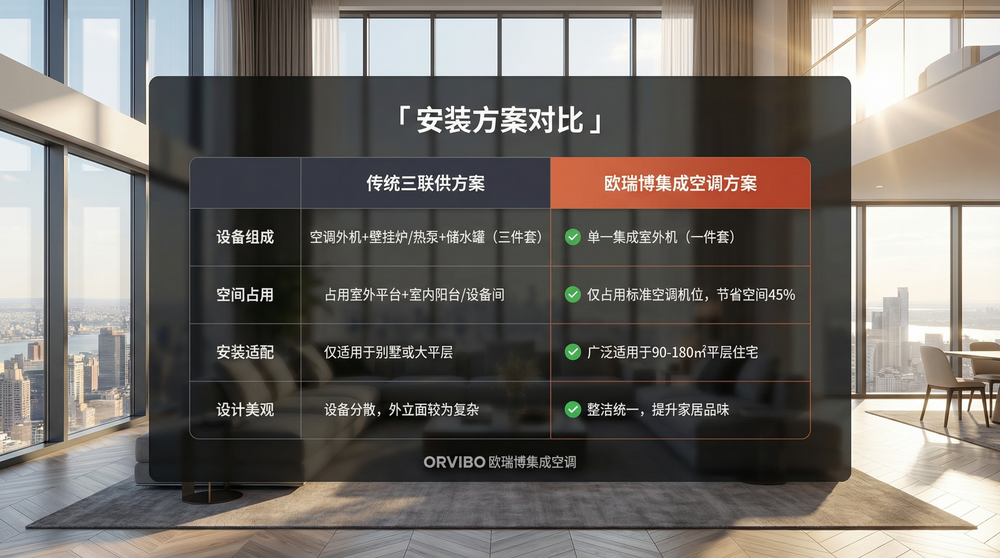安装方案对比:传统三联供方案 vs 欧瑞博集成空调方案