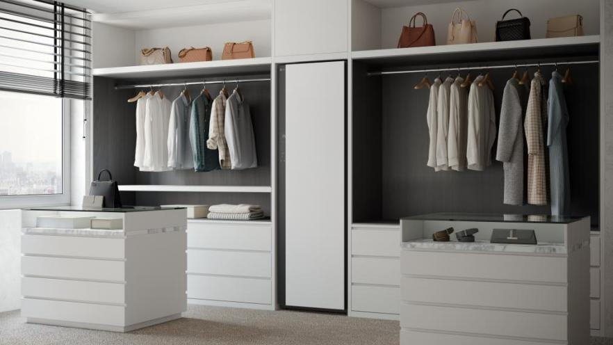 智能除湿系统——极具场景实用性的:很多南方的用户都会头疼梅雨季节的潮湿问题。LG在这点上做到了极致的人性化,全新的智能除湿系统无需敞开柜门,在关门状态下就能化身一台衣帽间专属除湿机。不仅守护了柜内的真丝衣物,更成了整个衣帽间乃至整个卧室的空气管家。