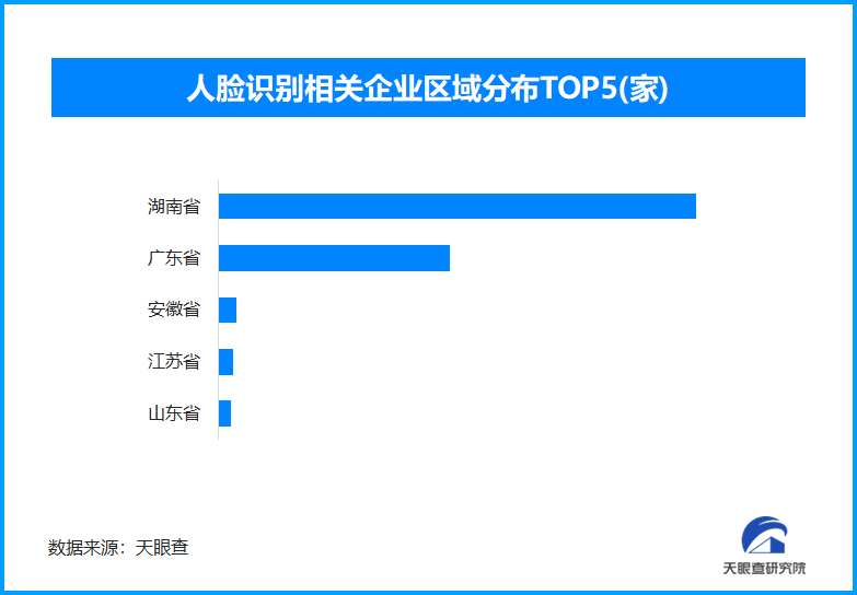 天眼查专业版数据显示,截至目前我国现存在业、存续状态的人脸识别相关企业超4500家。从区域分布来看,湖南省、广东省人脸识别相关企业数量位居前列,两个省市数量总和超过3700家,占企业总数的81.73%。
