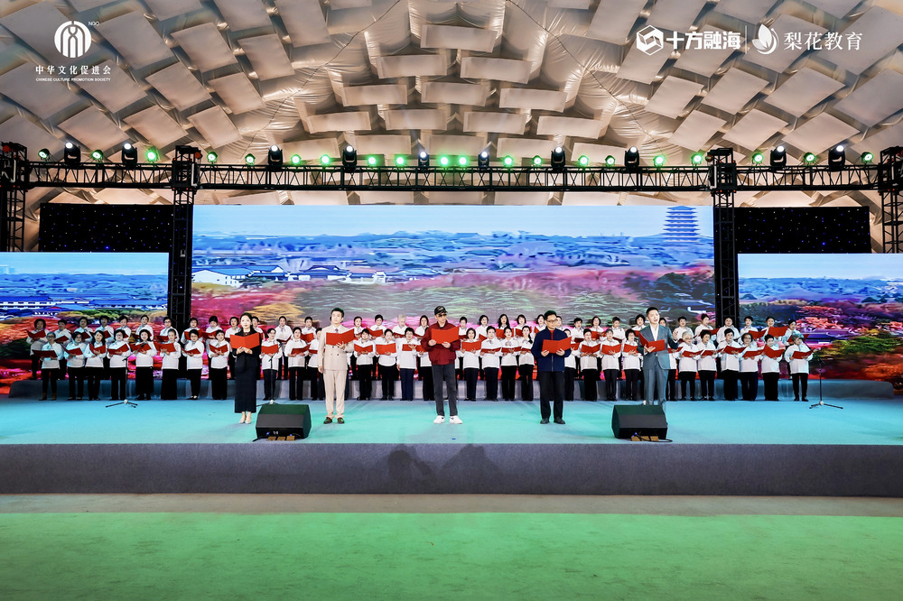 这场由中华文化促进会文化旅游产业委员会、十方融海梨花教育等多方联合主办的活动,其中138位参演者来自梨花教育这一中老年文化素养智慧服务平台。他们并非被企业组织来看演出的游客,而是经过梨花教育的系统学习后登上舞台的朗诵者。活动选址扬州,与这座城市的文化底色天然契合——大运河原点城市、4项联合国非遗、《西游记》开机40周年的集体记忆,这些要素让朗诵经典这个行为有了更深的文化纵深。