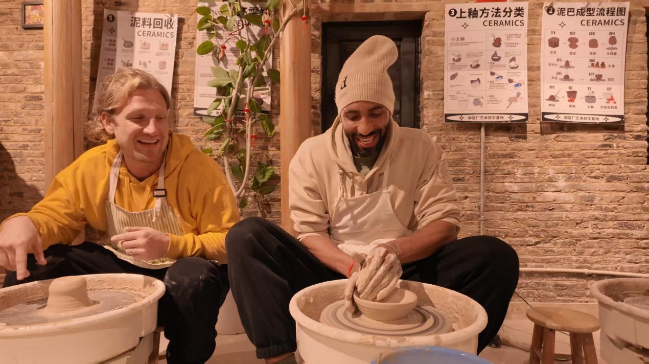 达人团在景德镇陶阳里开启一天一夜的陶瓷文化深度体验,近距离感受 “世界手工艺与民间艺术之都” 的匠心。他们跟随英文导览探访御窑遗址、古窑作坊,聆听千年制瓷史,围观揉泥、拉坯、施釉等非遗制瓷技艺演示;还在老师傅指导下亲手体验揉泥、拉坯,触摸瓷泥感受制瓷工艺的精妙。俄罗斯旅行博主叶夫根尼娅・加比托娃说:“亲手触摸瓷泥,让我对景德镇瓷器有了更直观的理解,这份鲜活体验是书本上无法获得的。”