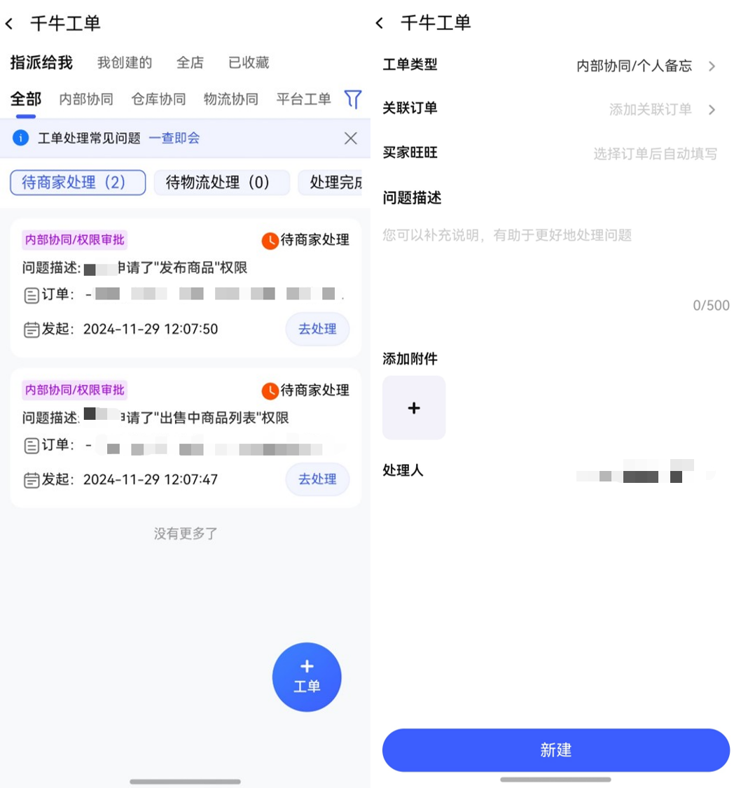 • 遇到问题找不到人?千牛工单功能也已上线,商家和平台的沟通有了更清晰的渠道,解决问题不再“石沉大海”。