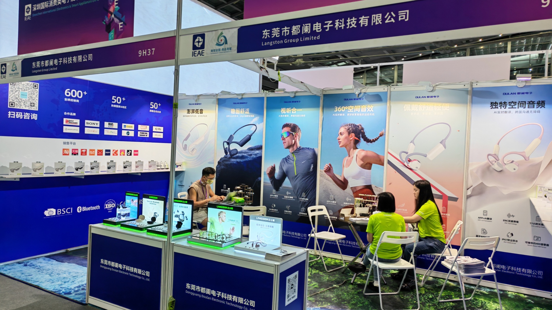 在东莞都阑电子的展位,DoNews遇到了公司销售经理王霖阳,据王霖阳介绍,此次IEAE他们带来了多款蓝牙耳机新品,涵盖运动、游戏、音乐等使用场景。