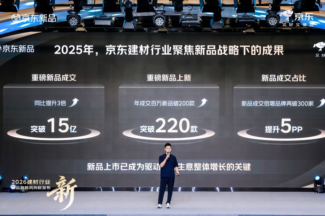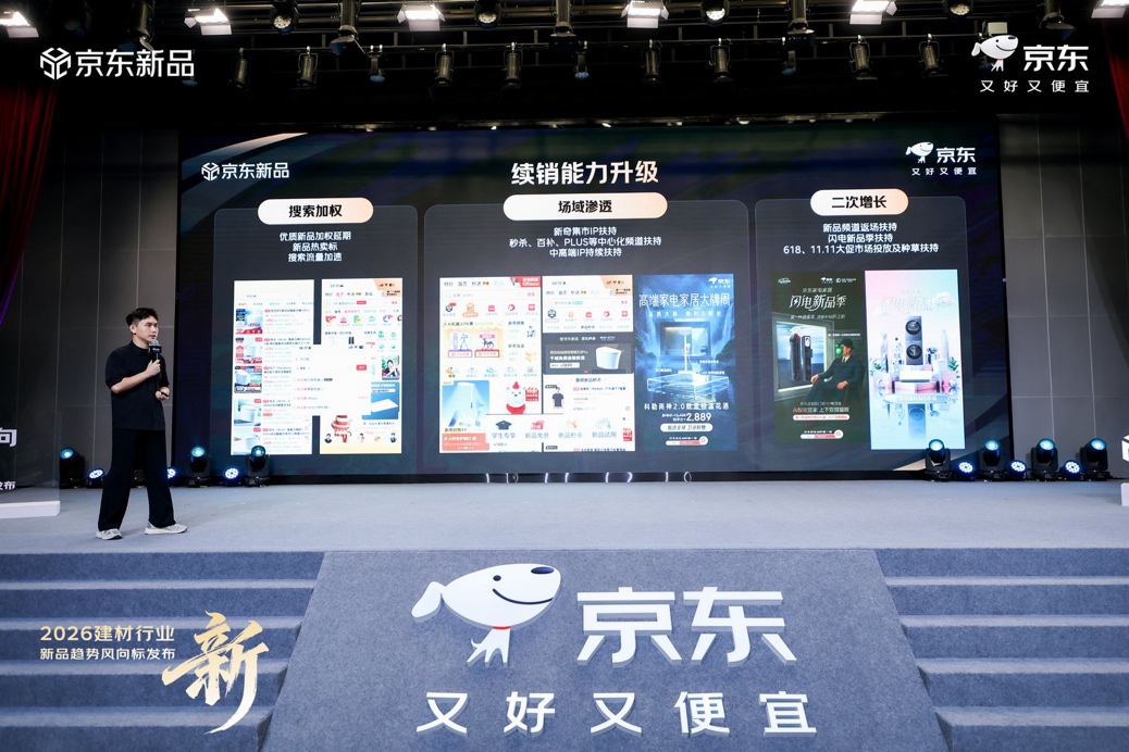 为持续助力品牌实现新品全生命周期长效增长,2026年京东建材将从依托京东新品&闪电新品的打爆方法论,从五大维度进行增长能力的全域升级。在C2M反向定制方面,京东全流程接入AI智能体,通过JoyInside为品牌提供从趋势洞察、产品定义到研发落地的全链路赋能,进一步提升新品研发的精准性与确定性。在新品运营层面,京东聚焦品牌重要营销节点,通过京东MALL实景首发、线下品牌活动联动、专属开新直播等形式打造线上线下一体化体验场景,并借助AI工具实现用户运营、权益规划与客户服务的精细化管理,提升转化效率。同时,京东对闪电新品发布会机制优化升级,围绕“悬念感”“颜值+科技”“测评实验室+名场面”三大方向打造传播亮点,通过沉浸式内容与创新形式,将发布会打造为具有行业影响力的整合营销事件。