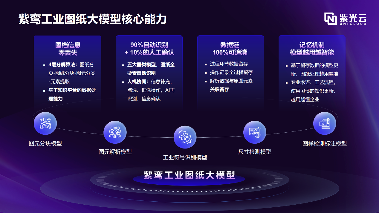 同时,紫鸾工业图纸大模型还可结合企业要求去做微调,大约15天左右即可以帮助企业生成真正适合自身生产的模型。与通用大模型不同的是,紫鸾工业图纸大模型可以做到图档信息零丢失,实现90%的图纸信息拆解和自动对齐,做到数据100%可溯源,并附带记忆机制。