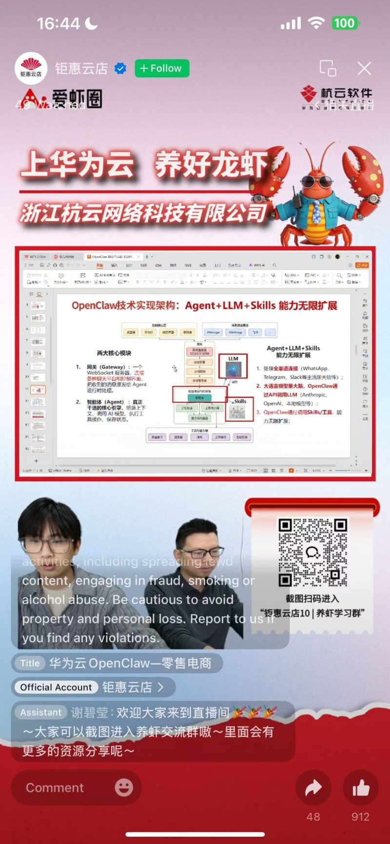 大模型的风口之上,早一步行动,就多一份领先优势。别再观望,现在就走进你身边的华为坤灵门店,或关注华为云官方微信,即刻开启专属的掌上“养虾”之旅!