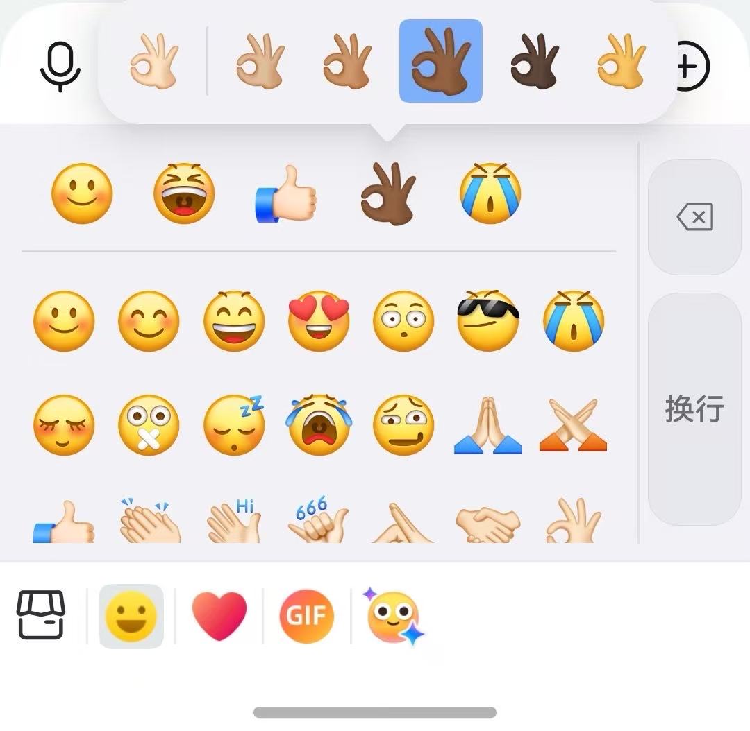 • 长按表情换肤:长按表情可选不同肤色,增加一点聊天的新鲜感。