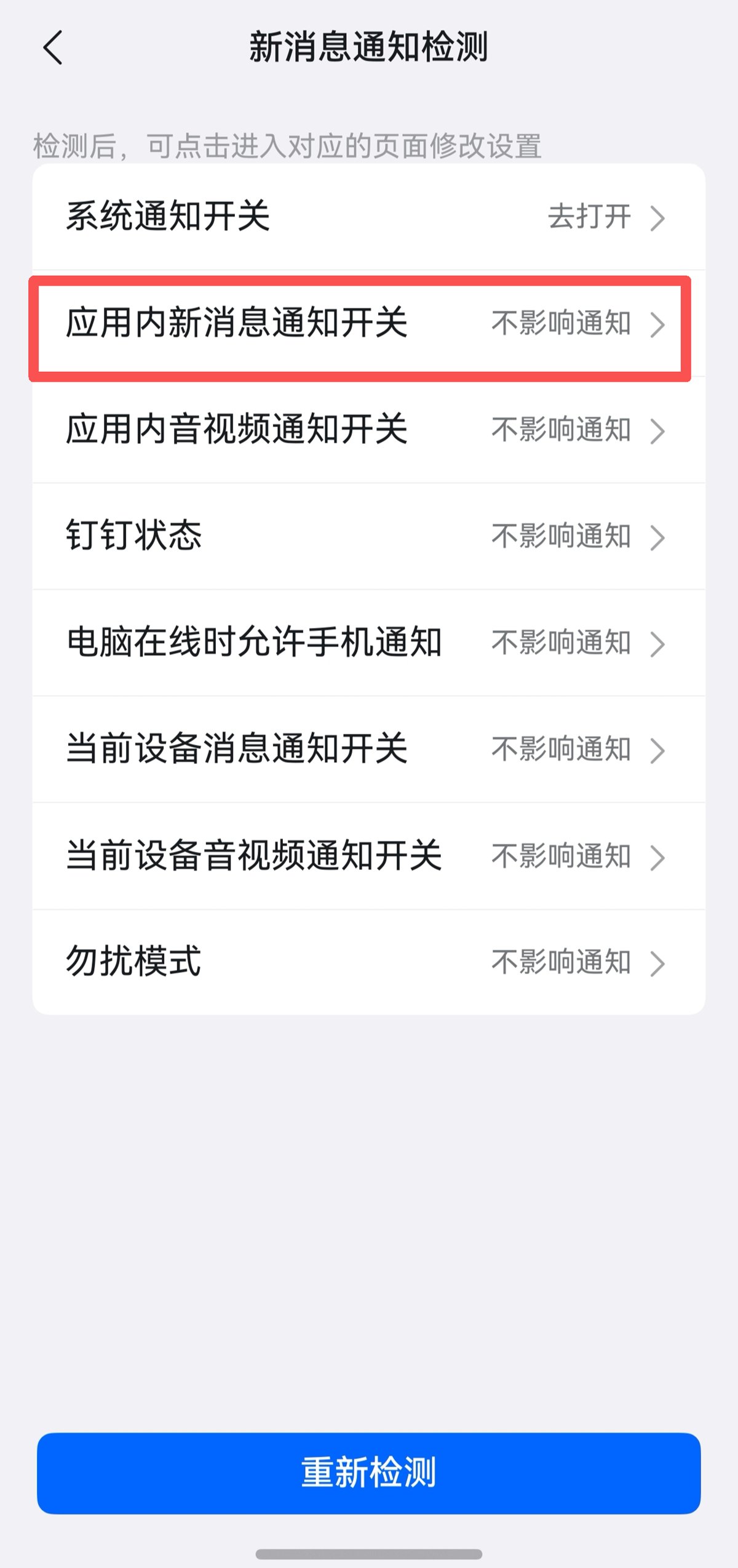 • 应用内消息通知:只要打开这个开关,即使在钉钉里浏览其他页面,重要消息照样弹出来,不会漏。