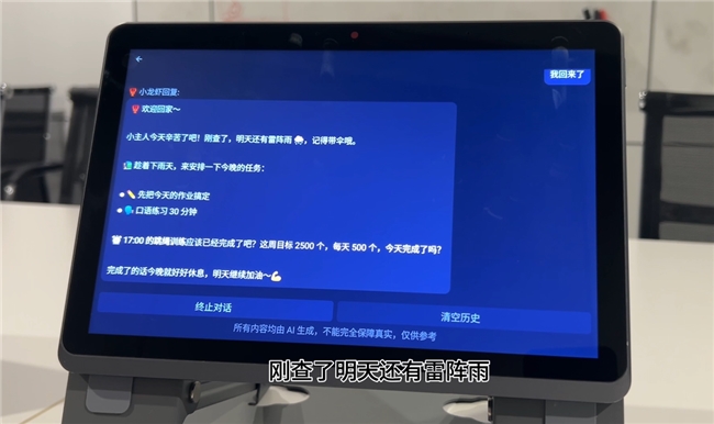 当孩子说出“我回来了”,S10通过声纹识别精准判断身份,主动切换至陪伴模式,同步匹配孩子课程表与成长计划,自动规划课后口语练习、体育锻炼等内容,用儿童易于接受的方式完成成长陪伴,既解放家长精力,也为孩子打造科学的课后成长环境。