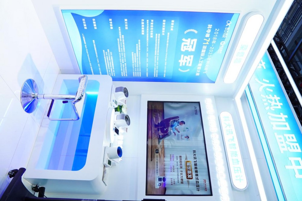 与传统血压计不同的是,讯飞智能血压计搭载了业界唯一采用全国产算力平台训练的星火医疗大模型,可深度融合用户年龄、既往病史及测量时段等多维信息,生成个性化健康解读,覆盖饮食指导、运动建议等内容;对血压异常指标可实时主动预警,并自动生成标准化结构化健康报告,为日常健康管理提供科学依据。展会现场,一位参观者在体验后表示:“测完后设备直接告诉我血压处于正常高值,建议减少钠摄入并连续监测三天,比单纯的数字更具参考价值。”