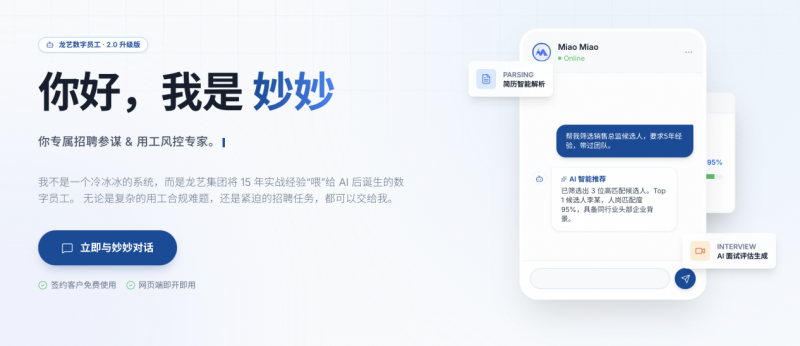 作为上海市人力资源百强前十机构,成立于2011年的龙艺集团,凭借“全国交付+数字赋能”双引擎,在500+领军企业(如中通、蔚来、叮咚买菜等)的实战中验证了其深度交付能力。其破局核心在于将隐性经验显性化,推出了覆盖HR六大模块的“妙人事”数智化平台。