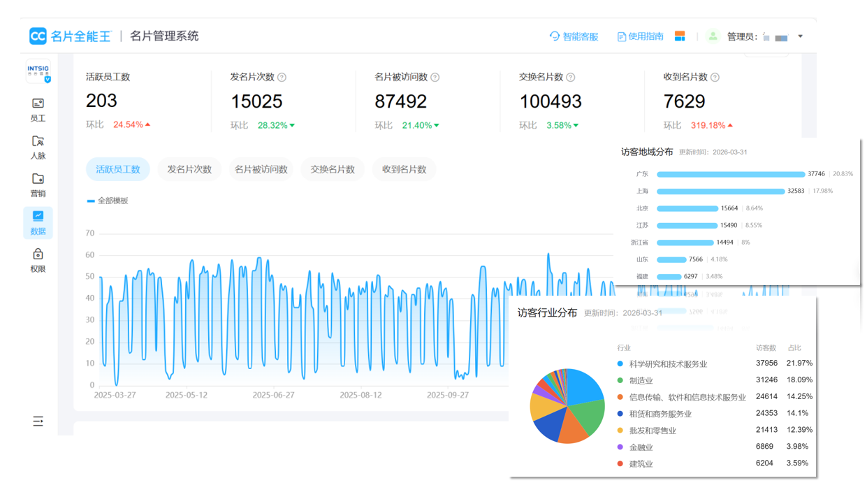 图说:名片全能王后台数据看板(虚拟数据,仅作演示)