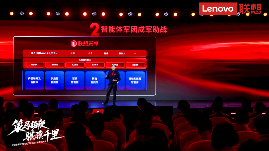 上一财年,联想中国区打造的“智能体军团”已经取得规模化落地成果——全球首个企业超级智能体联想乐享,去年5月上线以来累计销售额突破30亿元,购买转化率较传统官网提升23%。联想乐享还与46个领域、场景智能体组成智能体军团,助力中国区客户直营营业额同比提升33%,占比超过八成,成为业务增长的“硅基战力”。此外,联想业内首创的城市超级智能体,更是已连下11城,以智慧点亮中国大江南北。