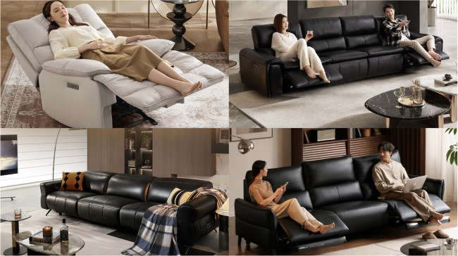 在智能沙发领域,芝华仕头等舱真皮功能单椅配备电动腰枕,前后可自由调节,怎么坐都舒适。智能语音控制,无需动手即可实现沙发调节,电动110°-160°调节,30°前后秋千摇,轻松放松身心;何润东“苏超”观赛现场同款“霸王宝座”——芝华仕大黑牛真皮功能沙发,采用珍贵进口半青皮,整张裁切,触感细腻,柔软亲肤;顾家家居新款赫兹S5沙发,搭载豪车同源的气囊按摩系统,基于人体工学的3段式气囊,从头到腰精准舒压,越坐越轻松;源氏木语鲲鹏功能沙发,支持腰、背分区独立调节和智能联动,实现腰背同步的深度舒压体验。