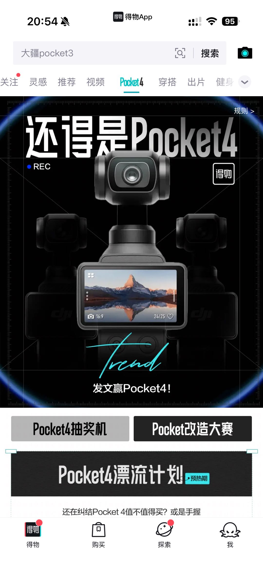 在新品发布期间,得物App联合大疆上线了一系列社区互动活动,鼓励用户分享创作灵感与使用体验,并提供演唱会门票、Pocket 4 新机等丰厚奖励,进一步激发了年轻人的参与热情,带动新品讨论与消费热度进一步释放。
