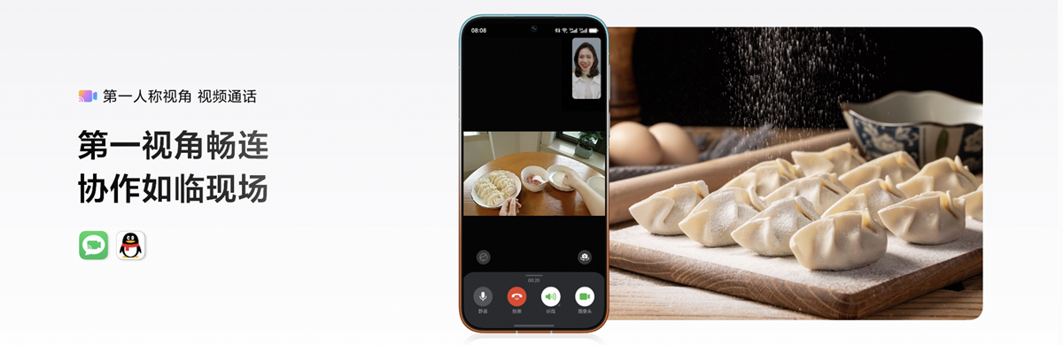 • 第一视角畅连,协作如临现场:在使用华为畅连、鸿蒙版QQ和朋友视频通话的过程中,也能通过双击镜腿轻松切换至第一视角,让对方看到你眼中的世界,并实时沟通。