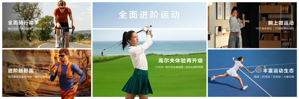 同时,HUAWEI WATCH FIT 5系列也是一位户外运动搭档。骑行时自动识别状态,实时显示模拟骑行功率、踏频等专业数据,帮助用户更直观地了解骑行表现。HUAWEI WATCH FIT 5Pro更面向专业户外场景深度赋能,越野跑支持分段导航、海拔趋势与完赛预估,帮助用户轻松掌握复杂地形;高尔夫爱好者可享全球1.7万+球场矢量地图,果岭视图随用户第一视角自动旋转,让用户精准把握每一次挥杆。