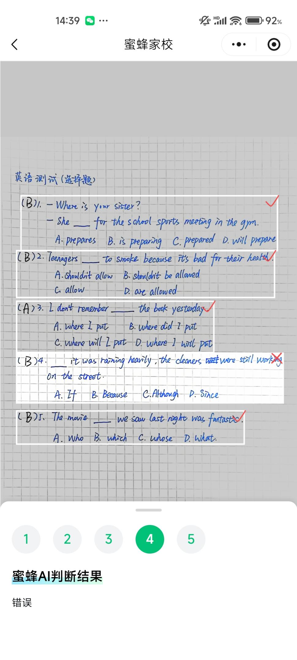 图说:蜜蜂AI技术精准批改学生手抄英语作业