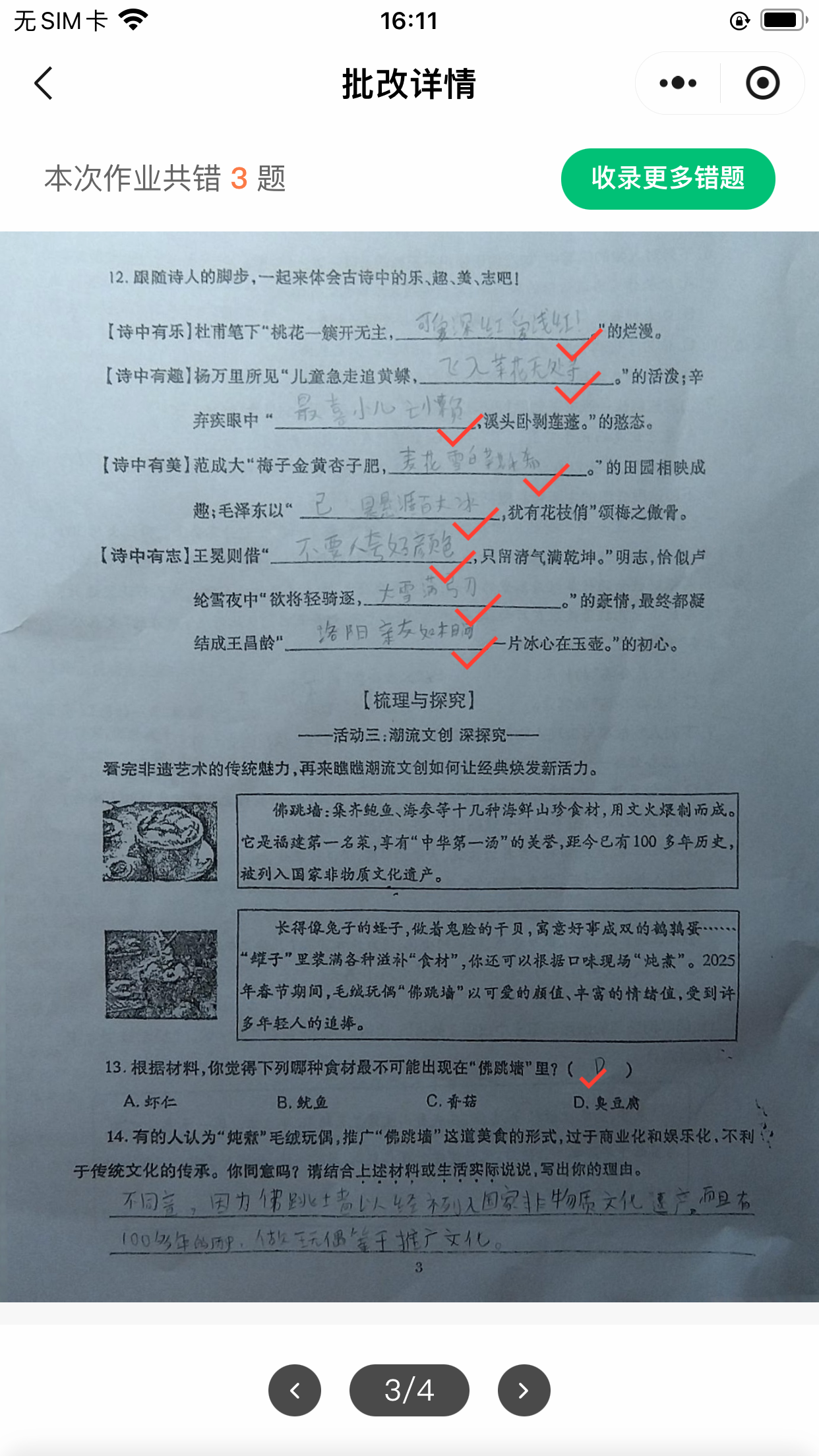 图说:蜜蜂家校小程序批改书写字迹过浅的作业