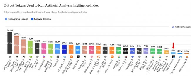 据权威三方评测Artificial Analysis 数据,Ling-2.6-flash 展现了突出的 Token Efficiency 优势,以 15M output tokens 实现了 26 分 的 Intelligence Index,在保持较强智能水平的同时,将输出消耗控制在相对更低的位置。相比部分依赖更长输出换取更高分数的模型,Ling-2.6-flash 在“智能表现”与“输出成本”之间取得了更优平衡。