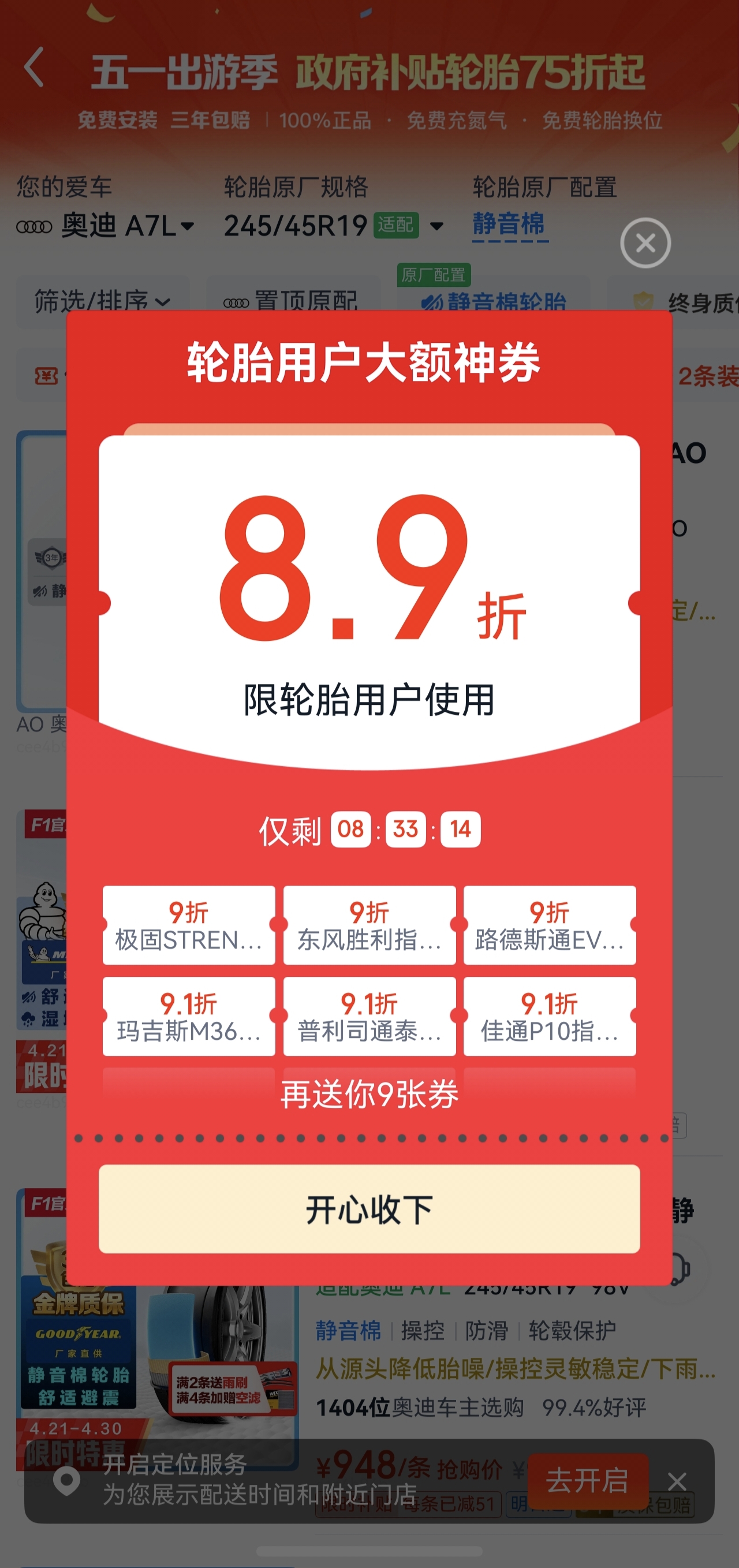 • 优惠券“自动”送上门:进入轮胎对应频道页面后,系统会自动弹出该频道专属优惠券,一键领取,随领随用。首页还新增新人专属福利与官方活动专区,所有优惠、活动一目了然,不再错过任何福利。