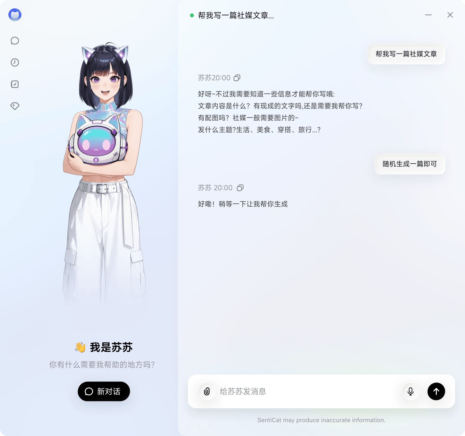 “任务执行+情感陪伴”,SentiCat 的双核策略